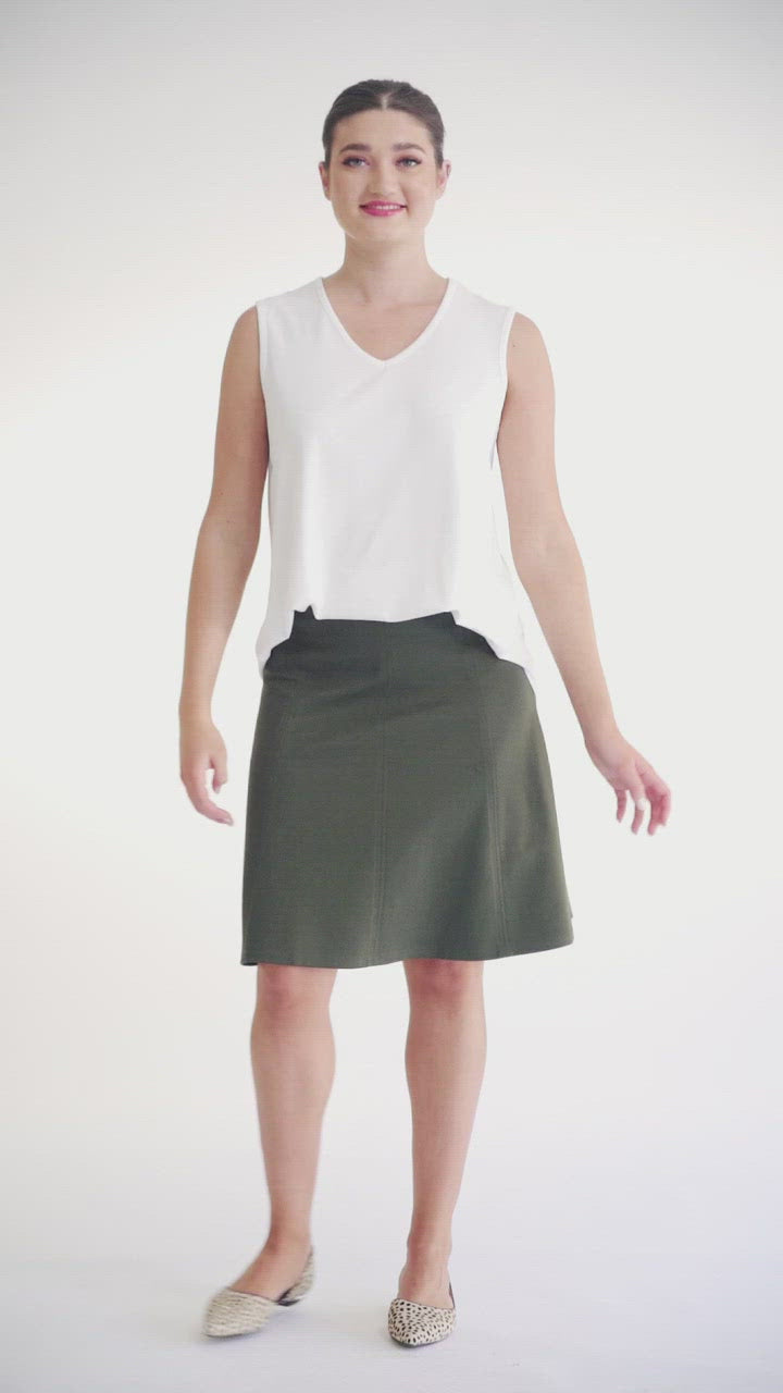 Alicia Tank is a relaxed-style sleeveless style with a curved hemline and a V-shaped neckline. The mercerised fabric is exclusive to our brand and has a smooth feel and beautiful drape.