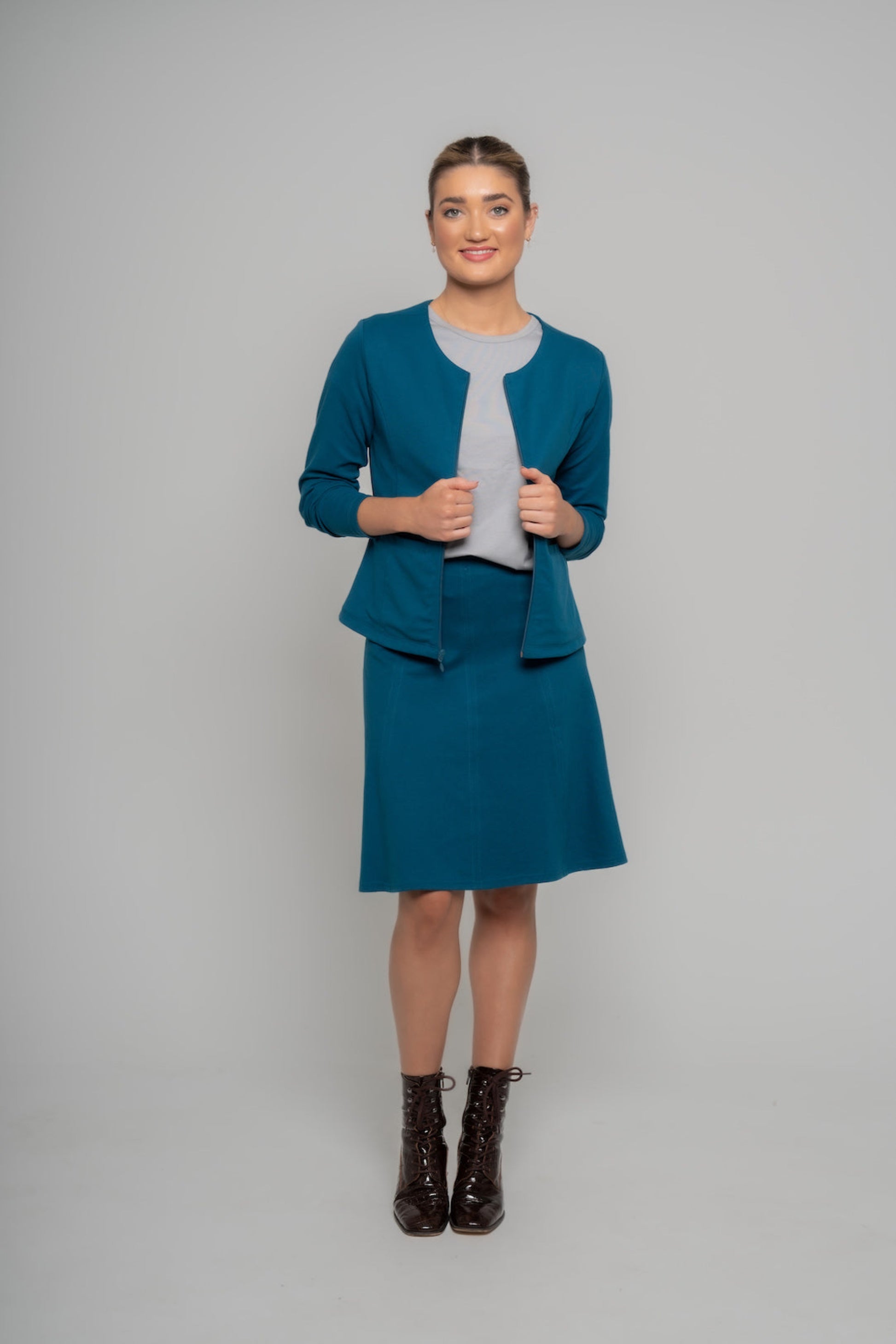 The cropped jacket is shorter in a collarless style in a medium weight. Plain detail and tailoring make it a great alternative to a classic blazer, and it is suitable for corporate or casual wear.