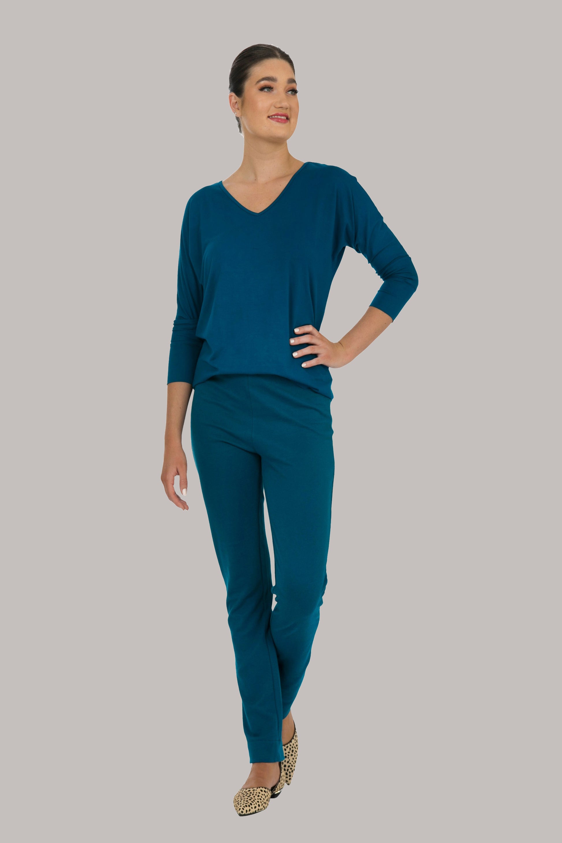 Our Flourish long-sleeve top has a rounded hem finish, and is comfortably loose with a self-fabric cuff, making for a comfortable adjustable sleeve length from long, to 3/4. It has a rounded hemline finish, and the fabric is treated fabric for a quality feel and drape.